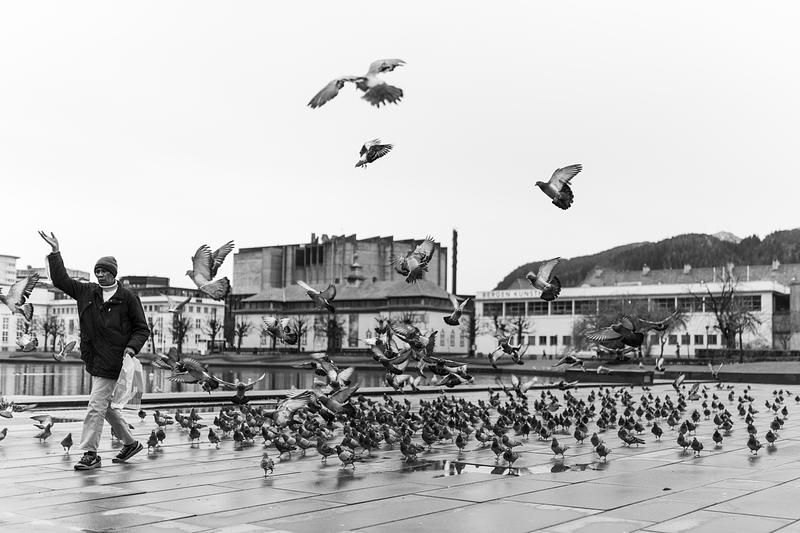 On a visit to Bergen I saw this guy feeding the birds. It's an easy way to find some love in a lonely life.