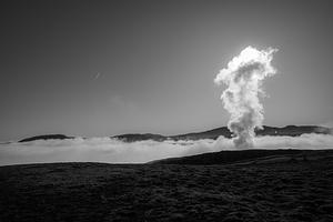 Driving around in Iceland these columns of smoke or water vapour really fascinated me. With the morning mist covering the ground it made for a spectacular sight.